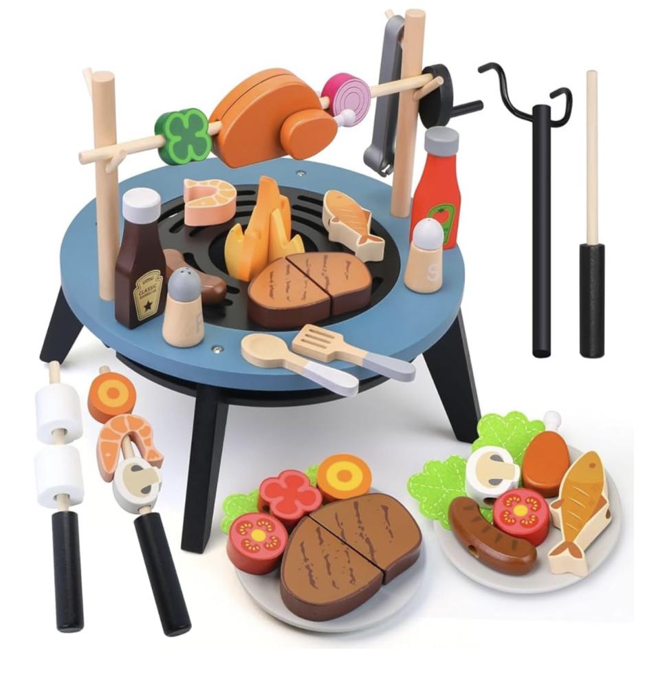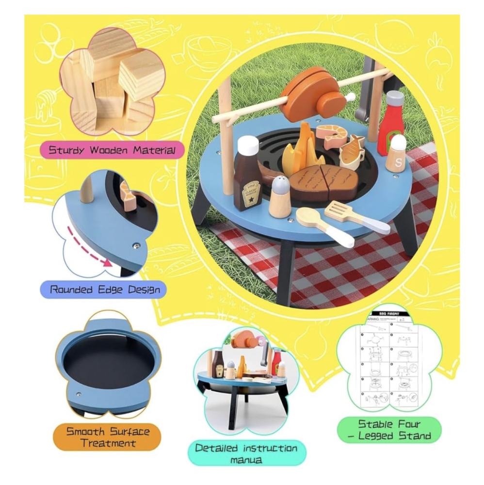 استمتعي مع طفلك بتجربة لعب واقعية ومسلية مع لعبة الشواء المصنوعة من الخشب المتين، وأدوات آمنة
